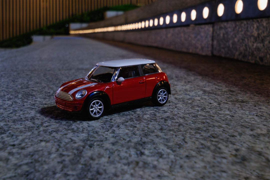 如果喜欢拍微缩模型的朋友,这支15mm F4.5超广微距镜头也是非常好的选择。这次我在户外分别拍了1:36的SUV和MINI小车,微缩模型与真实环境很融合,好像真车一样,非常有趣。