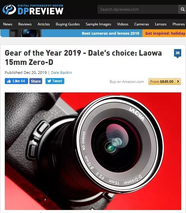 2019年末,DPReview网站发布了编辑们的2019年度之选,老蛙15mmF2镜头有幸出现在榜单中。DPReview是美国著名数码摄影网站,创建于1998年,经多年发展现已成为全球范围内最具规模且广受欢迎的摄影网站。