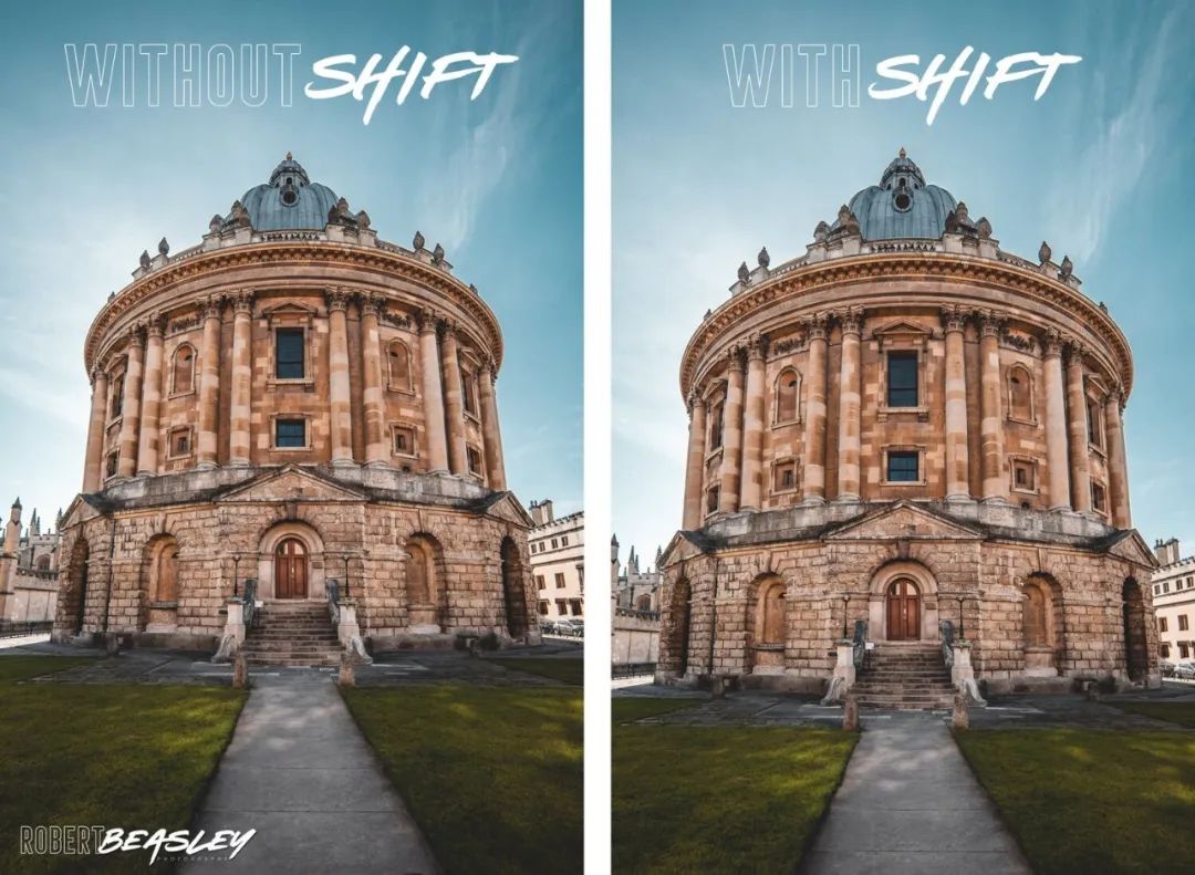 不过用简单的话来说,移轴镜头就是拍摄风光和建筑时可以用来校正透视变形的镜头。如果你曾经用相机或手机拍摄过高耸的建筑物,你肯定注意过,建筑物越高,好像它的顶部就离你越远,拍出来的整个建筑感觉像是向后仰着一样,移轴镜头的偏移功能可以校正这一问题。