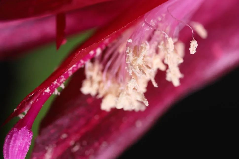 2倍放大拍摄,花蕊上的单个花粉粒清晰可见,但景深很小。