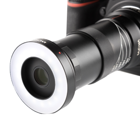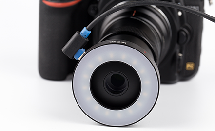 由于LAOWA 老蛙 25mm F2.8 Ultra Macro 2.5-5.0X超微镜头的放大倍率较大,实效光圈很小,进光量也低,取景画面暗,难以精确对焦。并且在即时取景模式下对焦过暗的环境会使画面噪声过多,难以看清细节,为了在对焦时能清晰看清物体做到精确对焦,我们开发了这款针对超微镜头的补光灯。(于LAOWA 老蛙 25mm F2.8 Ultra Macro 2.5-5.0X镜头专用)